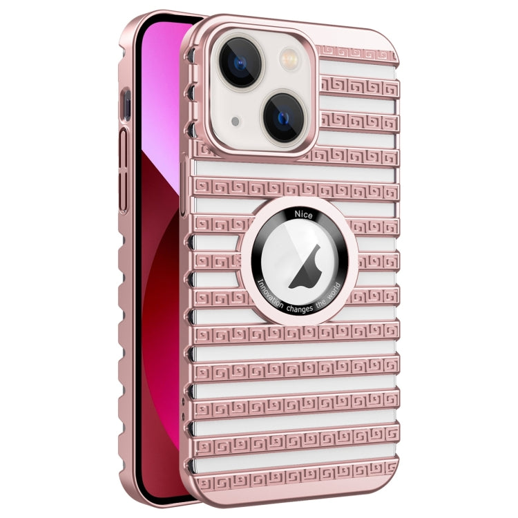 Pour iPhone 13 Étui creux galvanisé avec échelle de refroidissement (rose)
