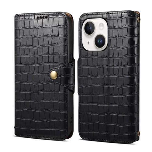 Funda para Teléfono Denior iPhone 13 Cuero Borde de Aceite Textura Cocodrilo (Negro)