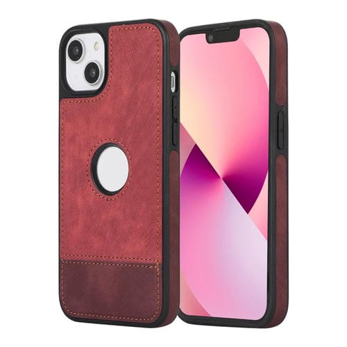 Funda para iPhone 13 Empalme Costura Caja de Teléfono de PU con Recorte Hueco (Rojo)
