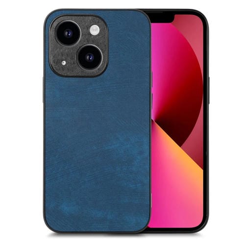 Funda de Teléfono para iPhone 13 con Contraportada de PC de Cuero Vintage (Azul)
