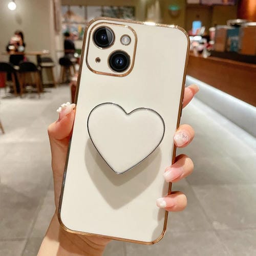 Funda para Teléfono iPhone 13 Galvanoplastia Love Heart Holder TPU (Blanco)