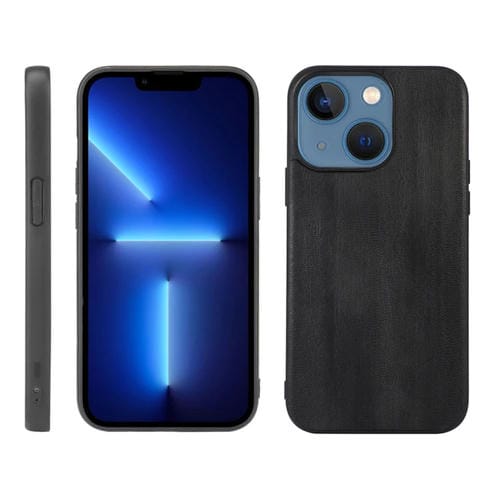 Funda de teléfono para iPhone 13 Mini PU textura de vaca función protección (Negro)