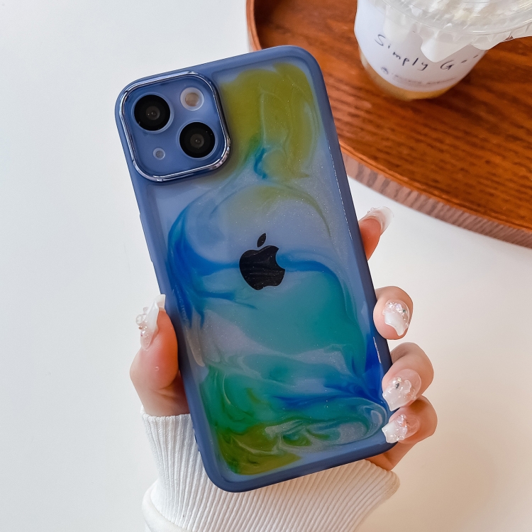 Funda para iPhone 13 Pintura al Óleo Galvanoplastia Caja del Teléfono TPU (Azul)