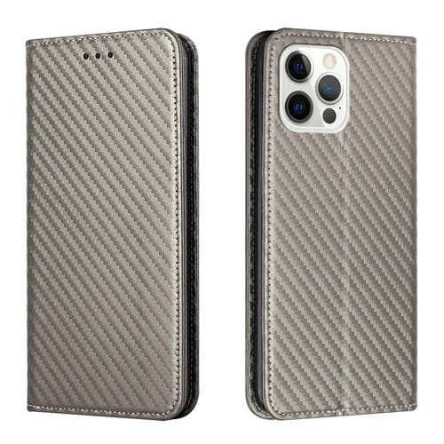 Funda de Cuero para iPhone 13 Pro Carbon Fiber Texture Flip Holder (Gris)