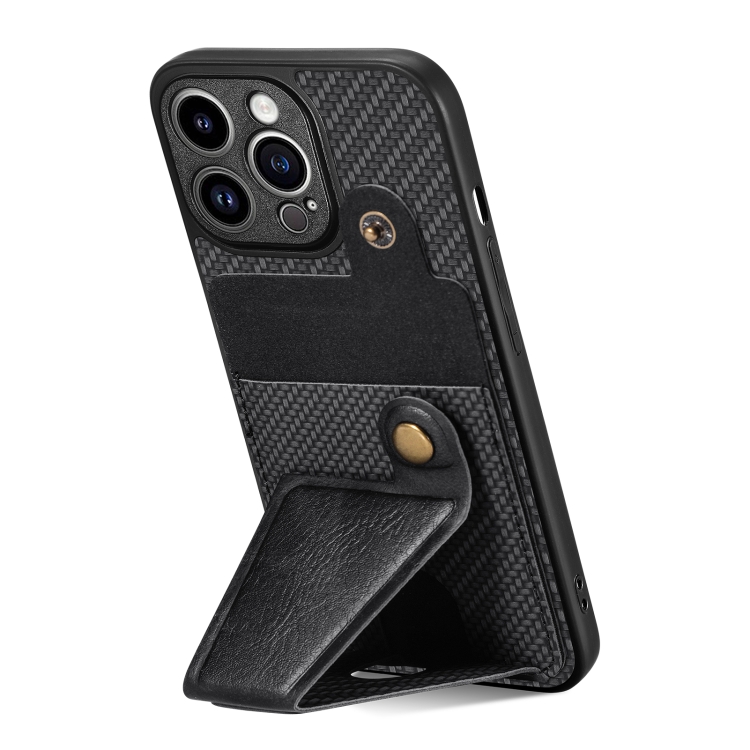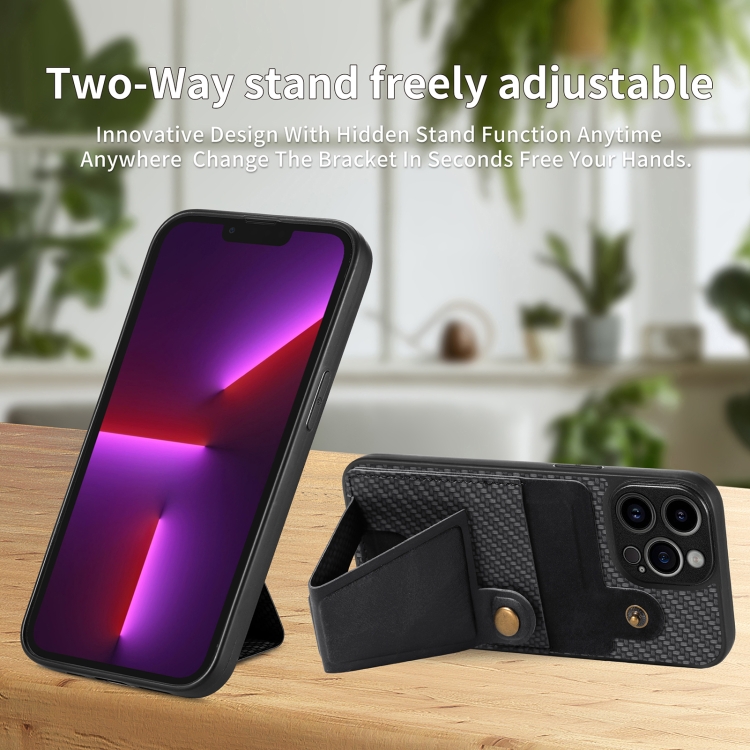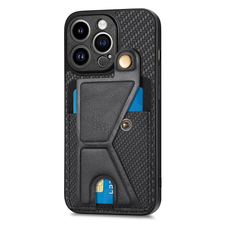 Funda para Teléfono iPhone 13 Pro Carbon Fiber Wallet Flip Card con Soporte en Forma de K (Negro)