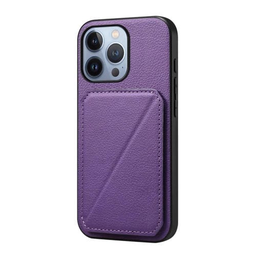 Funda para Teléfono iPhone 13 Pro D04 con Ranura para Tarjeta Dual y Textura de Becerro (Púrpura)