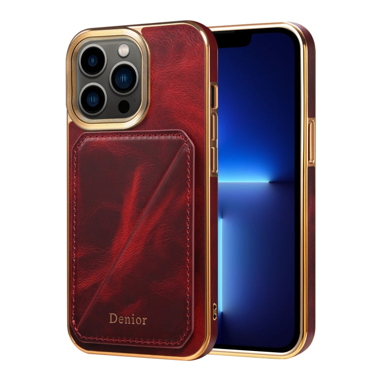 Pour iPhone 13 Pro Denior Huile Cire Cuir Galvanoplastie Fente pour Carte Étui de Téléphone (Rouge)