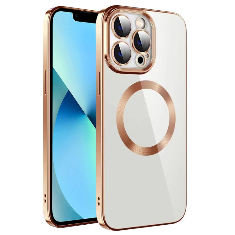 Pour iPhone 13 Pro Galvanoplastie MagSafe TPU Phone Case avec film d'objectif (Or)