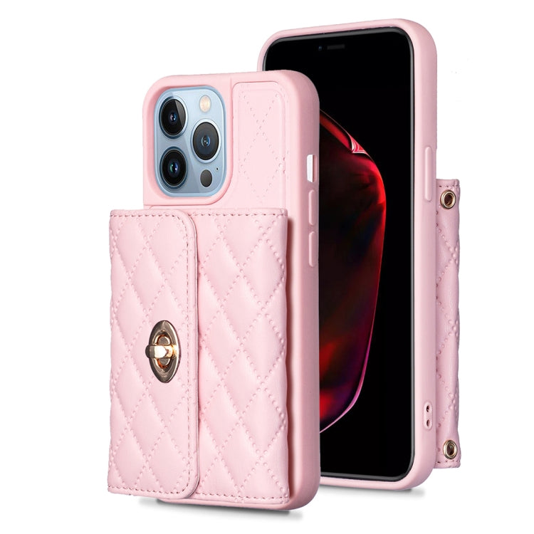 Funda de Cuero para iPhone 13 Pro Horizontal Metal Hebilla Cartera Rombico (Rosa)