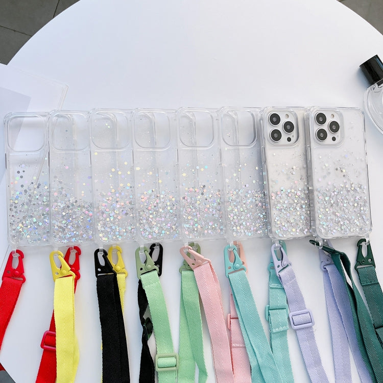 Funda para iPhone 13 Pro Lanyard Glitter Epoxy Clear Phone Case (Rojo)