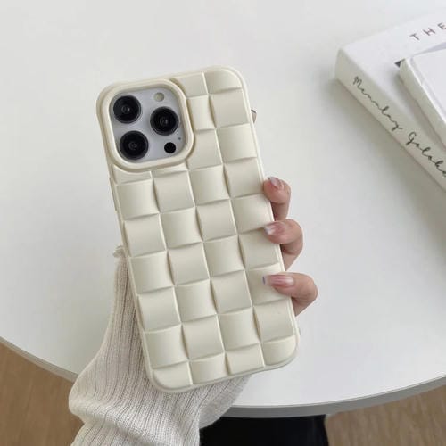 Pour iPhone 13 Pro Max 3D Cube Weave Texture Skin Feel Phone Case (Beige)