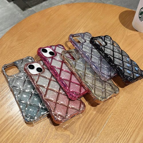 Funda para iPhone 13 Pro Max 3D Diamond Lattice Laser Engraving Glitter Paper (Gradiente Púrpura)