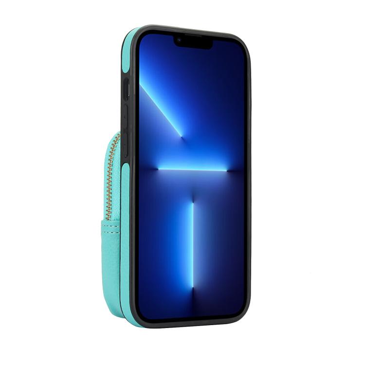 Funda para iPhone 13 Pro Max Awquer Crossbody Zipper Wallet Bag Litchi Leather Phone Case (Verde Menta)