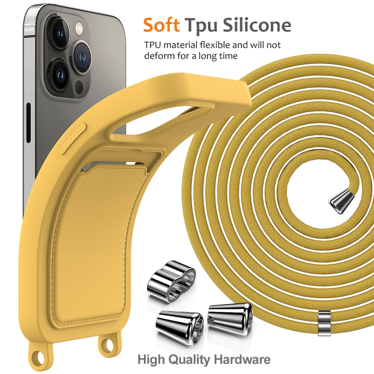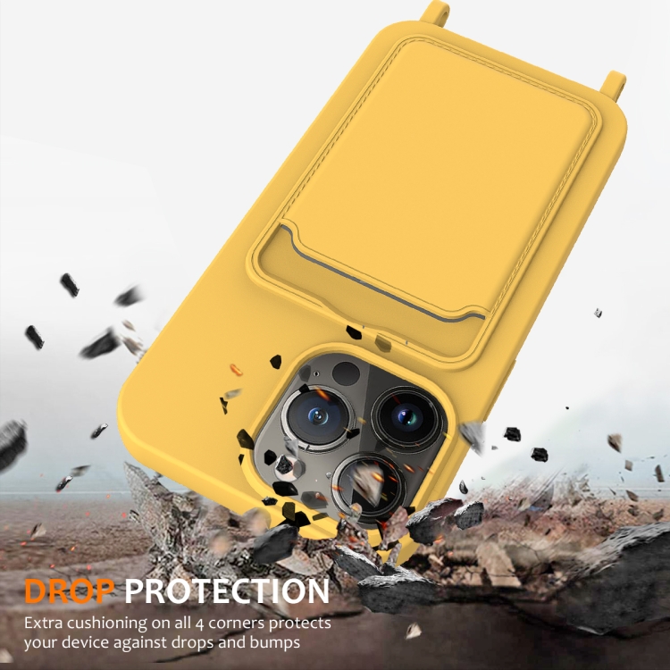 Funda para Teléfono iPhone 13 Pro Max Bolsa para Tarjeta Integrada Silicona Líquida (Amarillo)