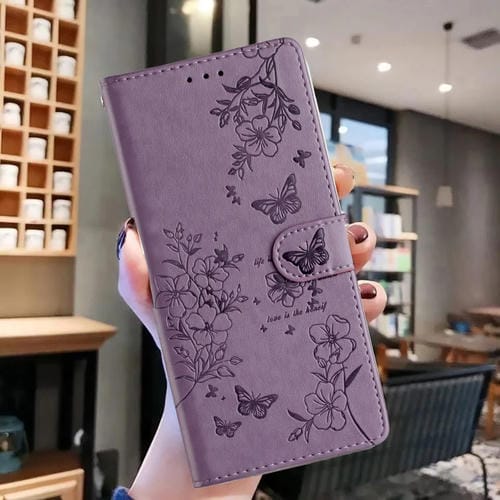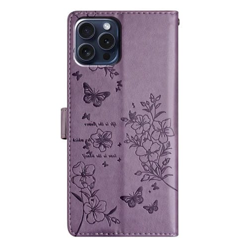Funda de Cuero para iPhone 13 Pro Max Butterfly Love Flower En Relieve (Púrpura)