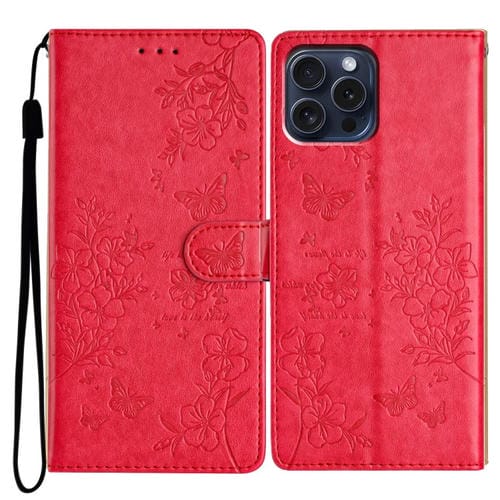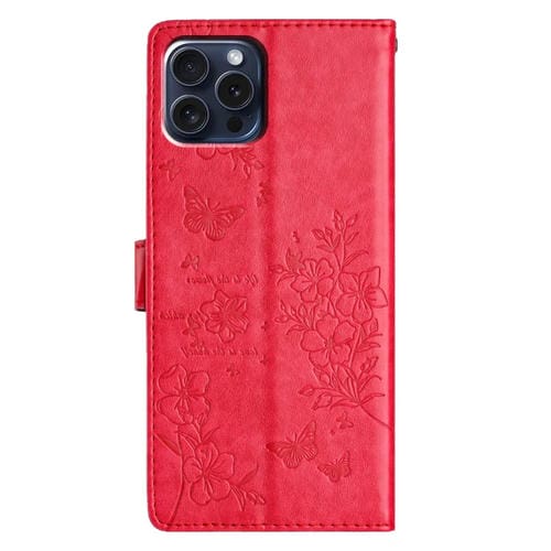 Funda de Cuero iPhone 13 Pro Max Butterfly Love Flower En Relieve (Rojo)