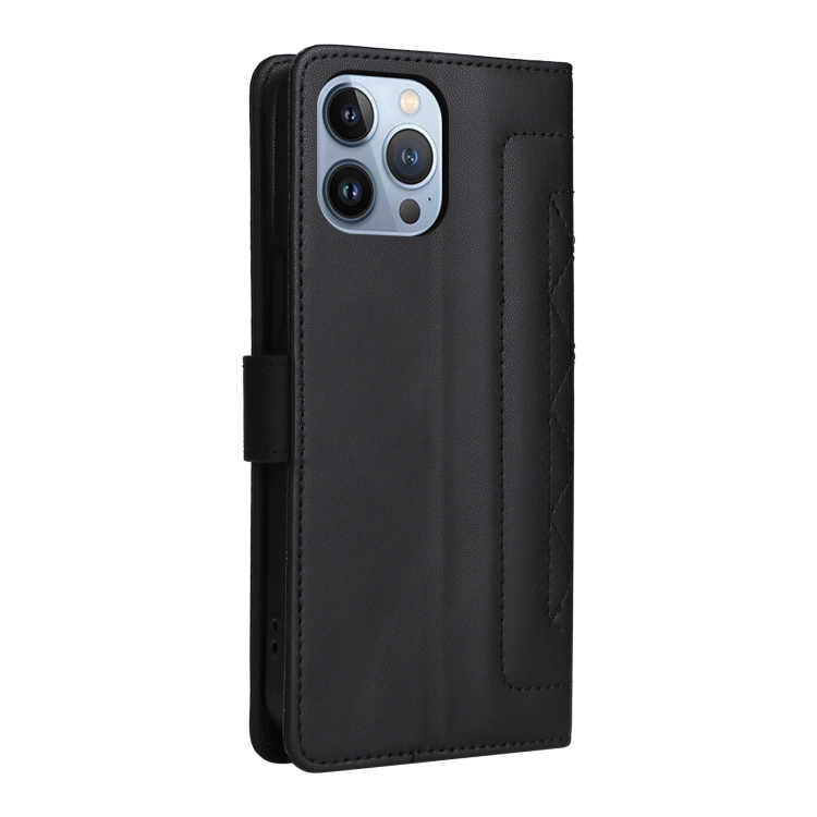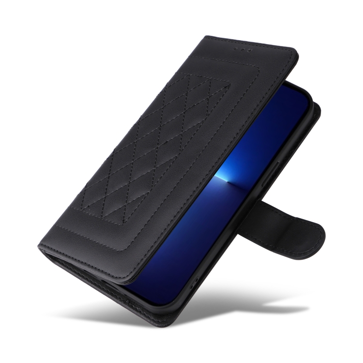 Funda para iPhone 13 Pro Max Diamond Lattice de Cuero con Tapa (Negro)