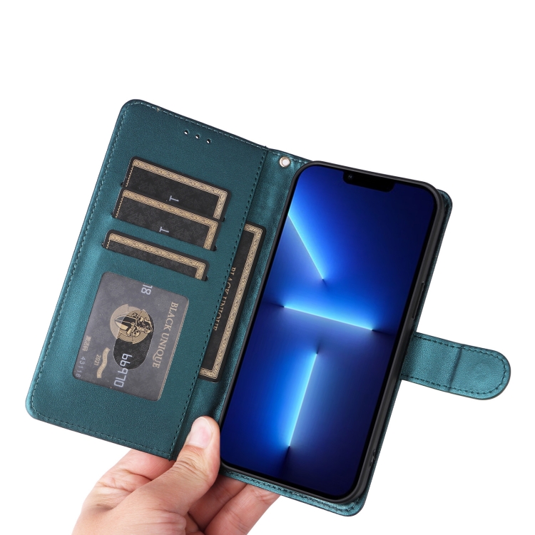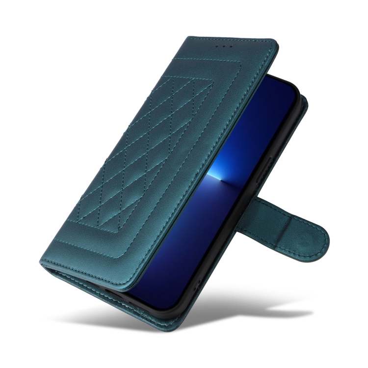 Funda para iPhone 13 Pro Max Diamond Lattice de Cuero con Tapa (Verde)