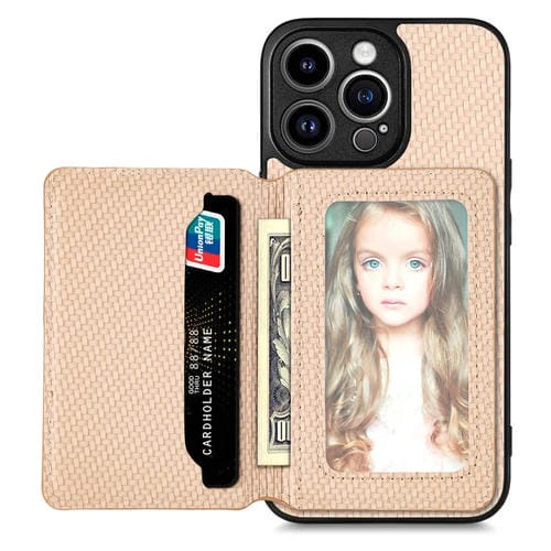 Pour iPhone 13 Pro Max Étui de téléphone avec sac de carte magnétique en fibre de carbone (kaki)