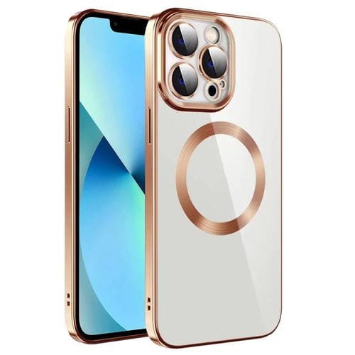 Pour iPhone 13 Pro Max Galvanoplastie MagSafe TPU Phone Case avec film d'objectif (or)