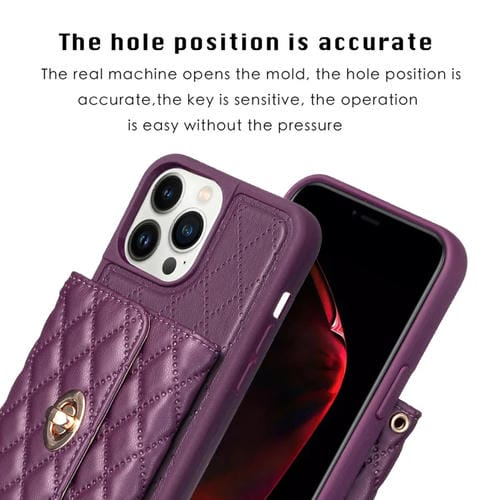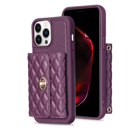 Funda Cartera para iPhone 13 Pro Max Rombico Horizontal Metal Hebilla Cuero (Morado Oscuro)