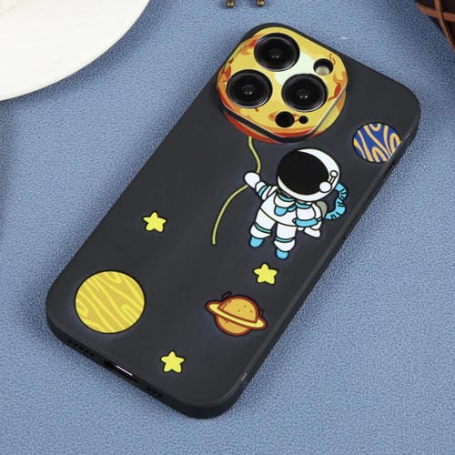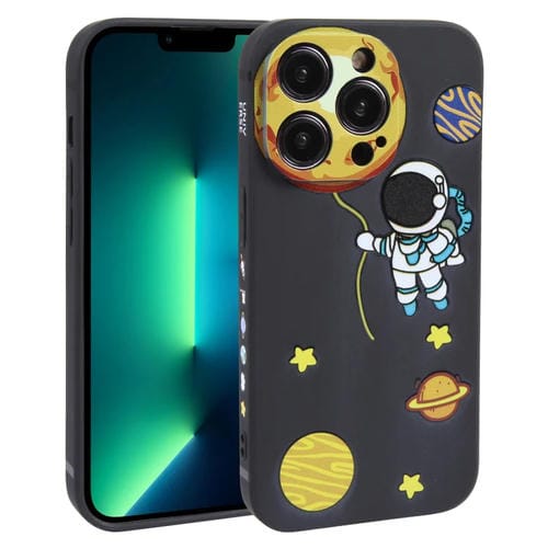 Funda TPU para iPhone 13 Pro Max Hug Moon Astronaut Pattern (Negro)