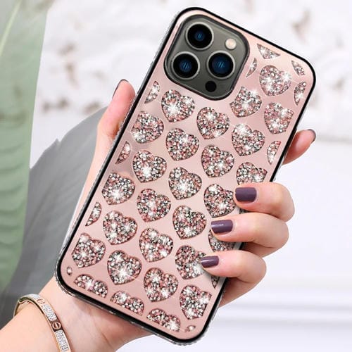 Funda para Teléfono iPhone 13 Pro Max Love Hearts Diamond Mirror TPU (Oro Rosa)