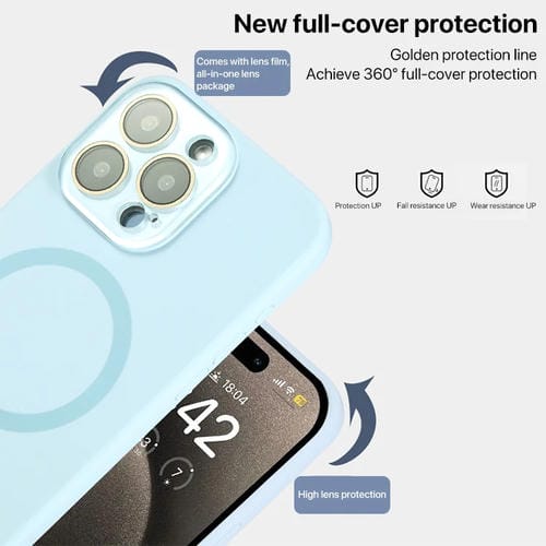 Funda para Teléfono iPhone 13 Pro Max Magsafe Cobertura Total Silicona Líquida con Película para Lentes (Verde)