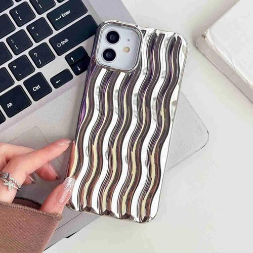 Funda para iPhone 13 Pro Max Plating 3D Water Wave Texture (Plata)
