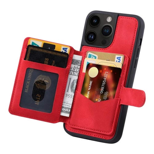 Pour iPhone 13 Pro Max Skin Feel Dream Antichoc Antivol Brosse Portable Skin Card Case Étui de téléphone (Rouge)