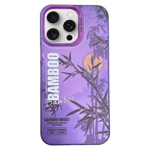Funda para Teléfono iPhone 13 Pro TPU + PC Pintura al Óleo Paisaje Colorido Atardecer (Bambú Morado)
