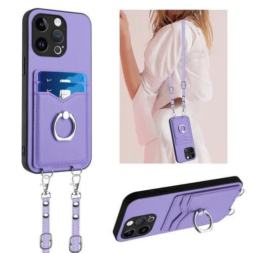 Funda para Teléfono iPhone 13 Pro R20 con Soporte y Tarjeta con Anillo de Cuerda Cruzada (Púrpura)