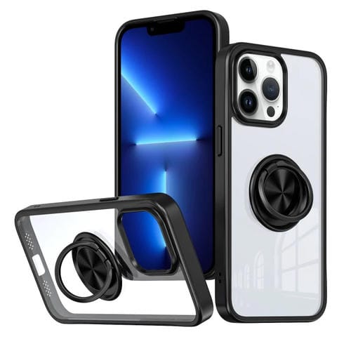 Funda para Teléfono iPhone 13 Pro Ring Holder PC Hybrid TPU (Negro)