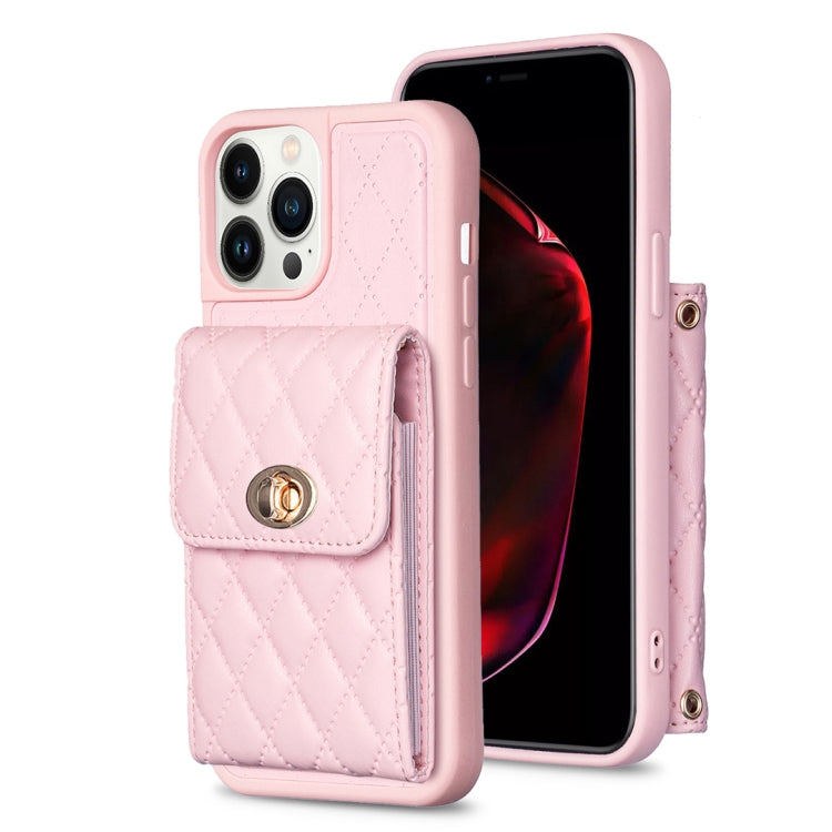 Funda para iPhone 13 Pro Rombico Cartera Cuero Vertical Hebilla de Metal (Rosa)
