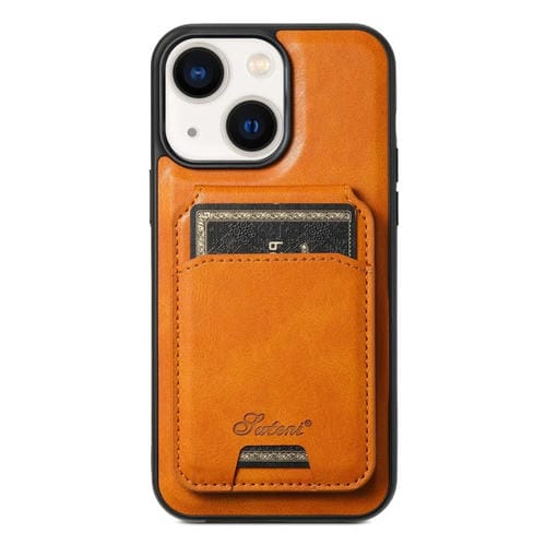 Funda Trasera para iPhone 13 Suteni H15 Magsafe con Billetera Desmontable de Cuero (Caqui)