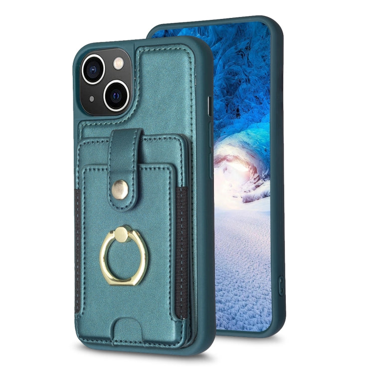 Funda para Teléfono Bf27 para iPhone 14 y 13 con Soporte para Tarjeta y Anillo de Metal (Verde)