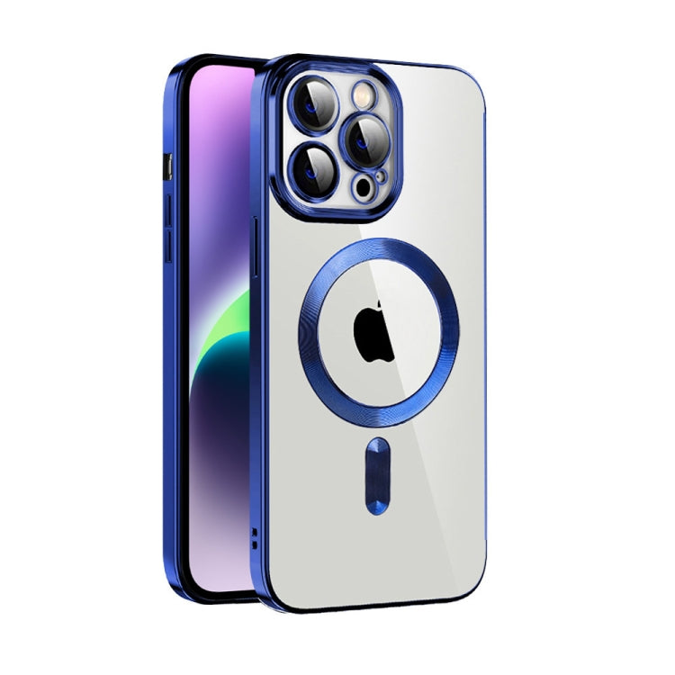 Funda para teléfono iPhone 14 Cd Textura Plating TPU Magsafe con Película de Lente (Azul Real)