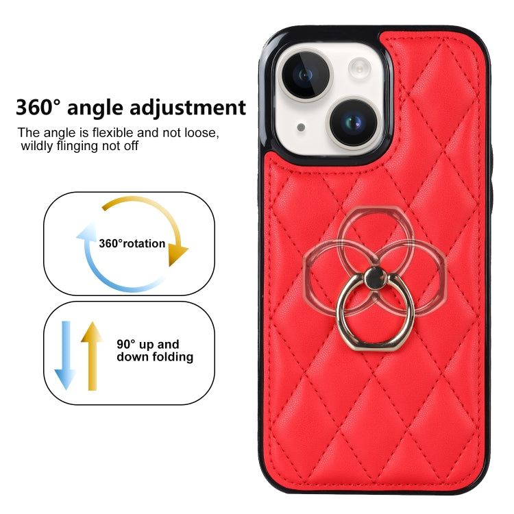 Pour iPhone 14 Étui de téléphone en cuir PU rhombique avec support de bague (rouge)