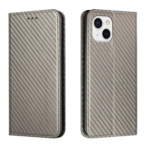 Funda de Cuero para iPhone 14 con Tapa Magnética y Textura de Fibra de Carbono (Gris)