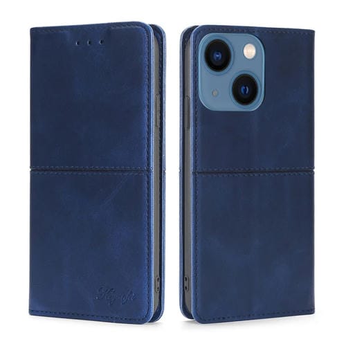 Funda de Teléfono iPhone 14 Cuero Magnético Textura de Vaca (Azul)