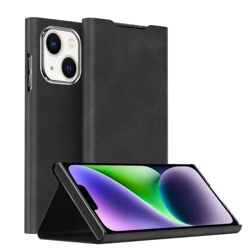 Funda Magnética de Cuero para iPhone 14 con Textura de Napa y Soporte (Negro)