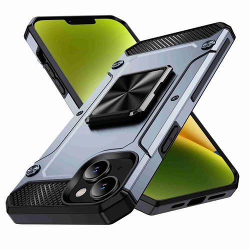 Funda para Teléfono iPhone 14 con Soporte de Metal a Prueba de Golpes (Gris)