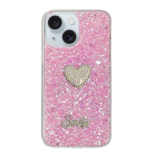 Funda para Teléfono TPU Epoxi iPhone 14 Corazón de Diamante Lentejuelas Estrelladas (Rosa)