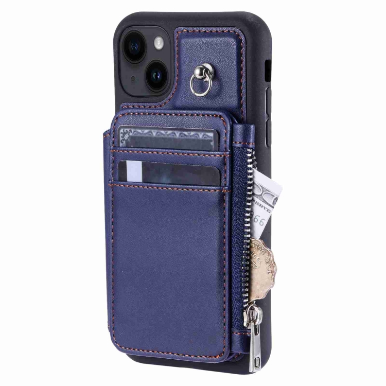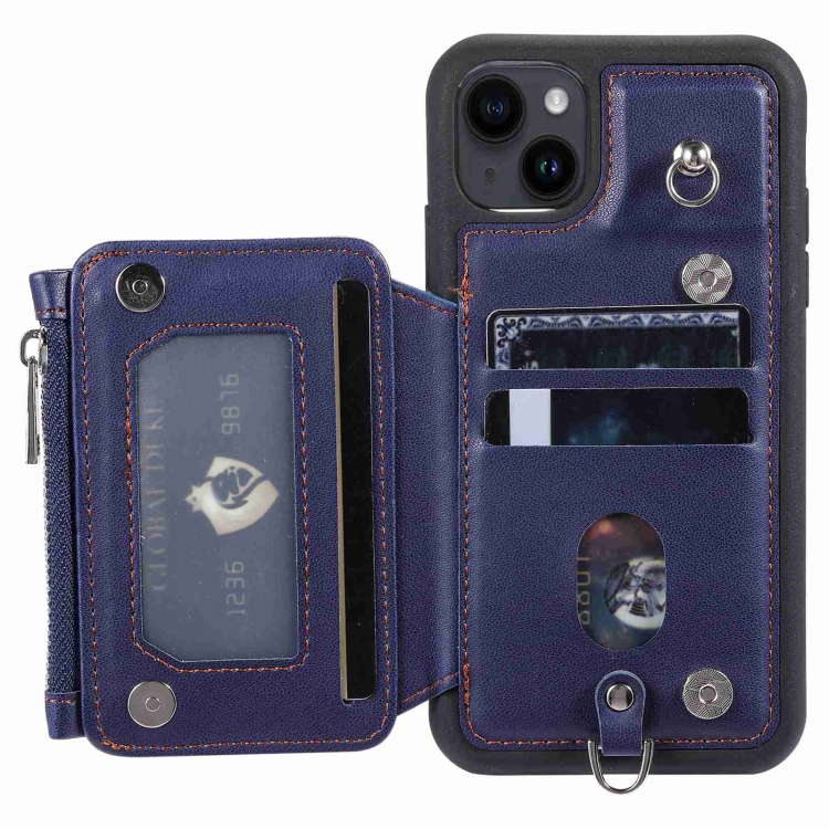 Funda para Teléfono iPhone 14 con Ranuras para Tarjetas y Cremallera (Azul)