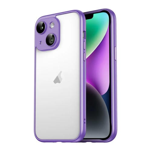 Marco de Borde Puro para iPhone 14 Macaron PC con Película de Vidrio para Lentes (Púrpura)
