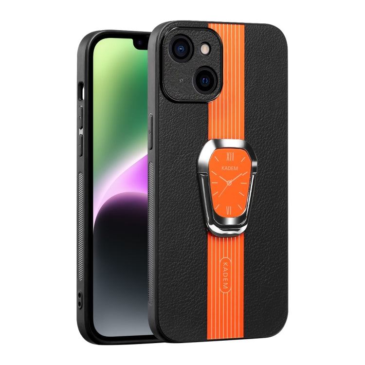Estuche Magnético para iPhone 14 Plus con Parte Trasera de Cuero Litchi y Soporte (Naranja)