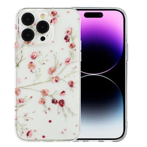 Caja de Teléfono TPU para iPhone 14 Pro Max con Patrón de Pintura Colorida (Flores Rojas)