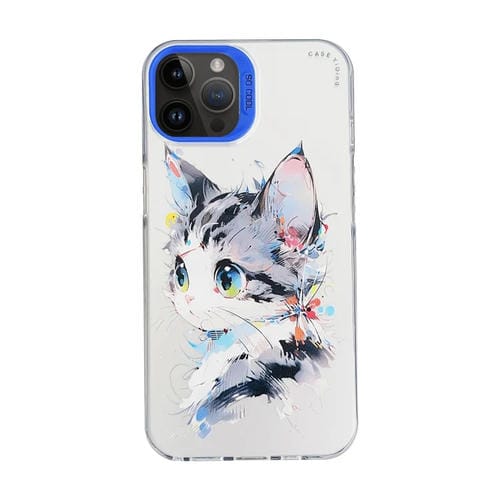 Funda para Teléfono iPhone 14 Pro Max Cartoon Animal Graffiti PC y TPU (Gato de Cara Blanca)