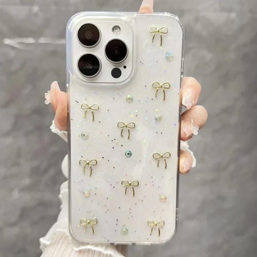 Estuche para Teléfono TPU para iPhone 14 Pro Max con Lazo Pequeño (Dorado)