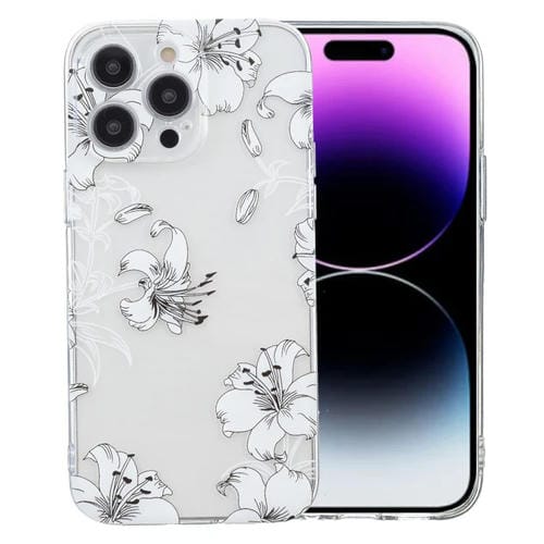 Funda de teléfono TPU para iPhone 14 Pro Max con patrón de dibujo de colores (Flor Blanca)